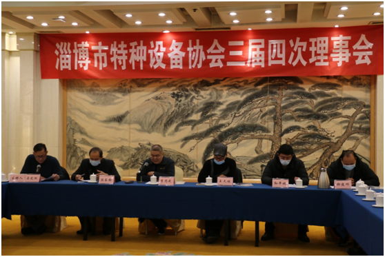 2020年11月27日,淄博市特种设备协会第三届第四次理事会会议在淄博饭店召开。淄博市特种设备协会理事长李思武、副理事长陈长标、副理事长王天林、副理事长孙丰收及协会常务理事长、理事、秘书处人员等40人出席了会议。会议由秘书长马龙池主持。
